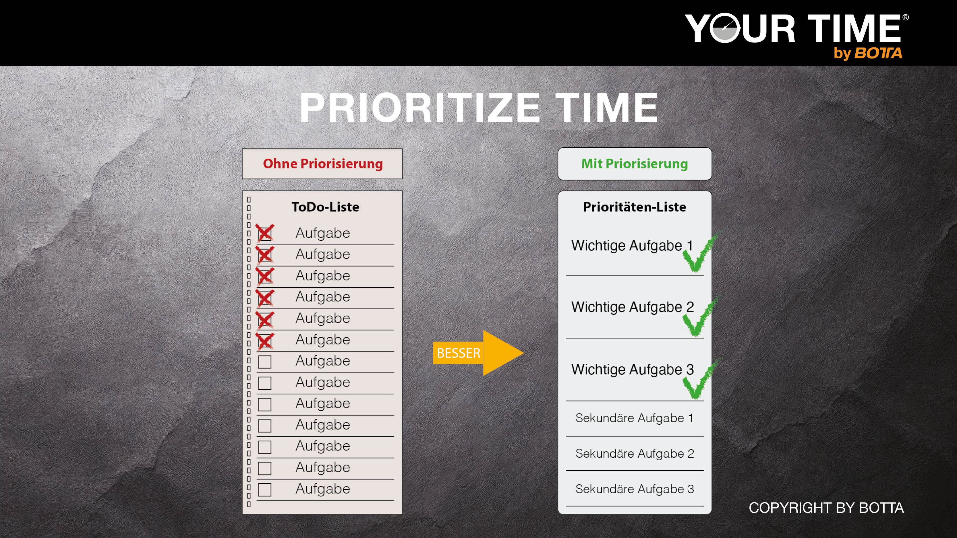 Time is our most valuable asset—each of us has exactly 24 hours per day at our disposal, no more and no less. What sets us apart is not the amount of time we have, but how we use it. Setting the right priorities is the crucial difference between busyness and true effectiveness.